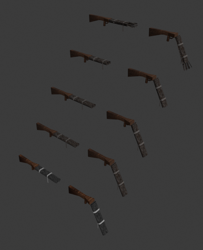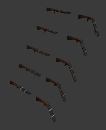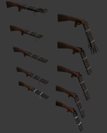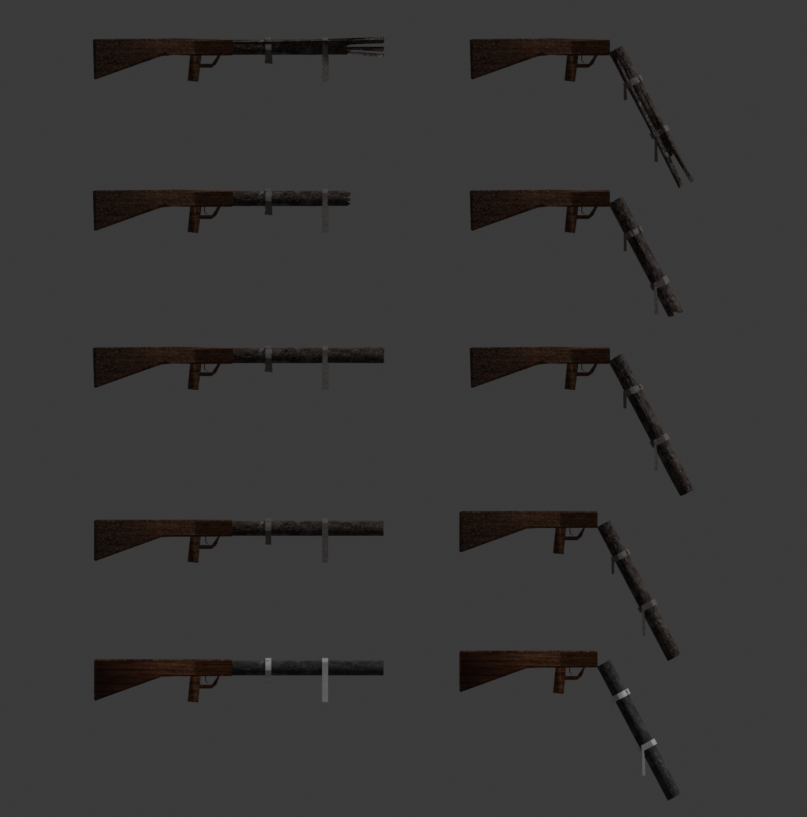 Clean, Dirty, Broken, Damaged and Exploaded shotgun models assembled and unassembled