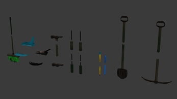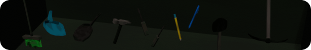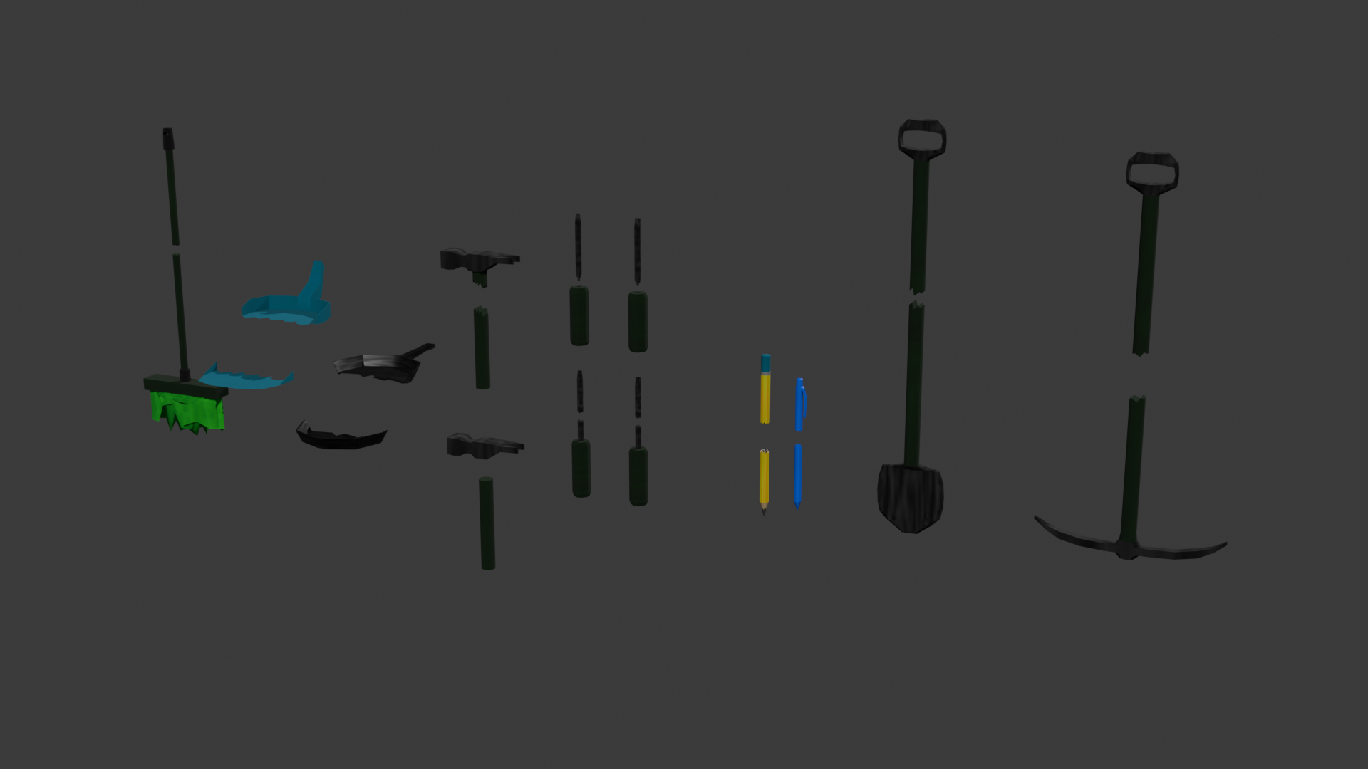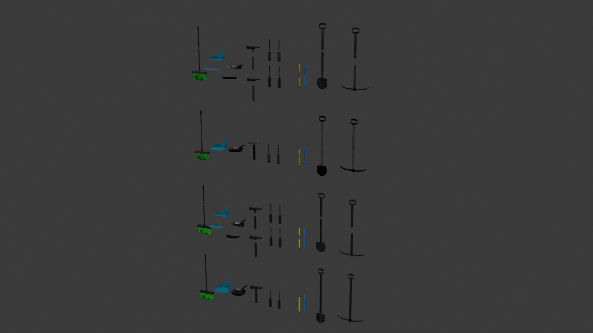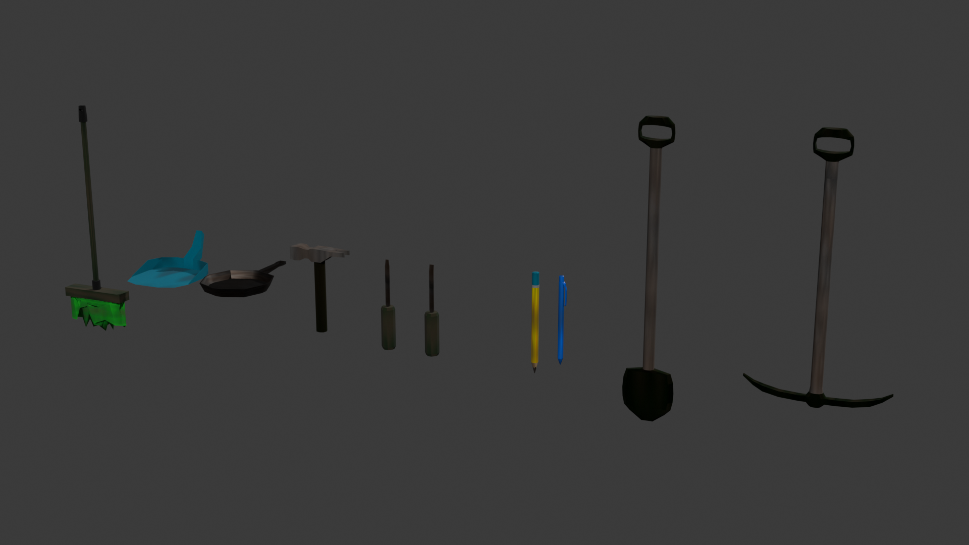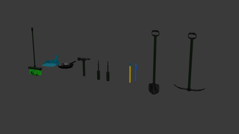Clean, Dirty and Broken broom, dustpan, hammer, shovel and many more